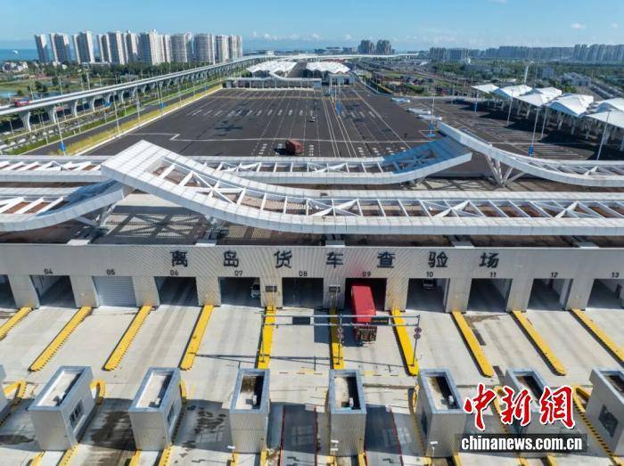 2025年9月15日,海南海口,出岛货车通过海口新海港和南港“二线口岸”(货运)集中查验场。中新社记者 骆云飞 摄