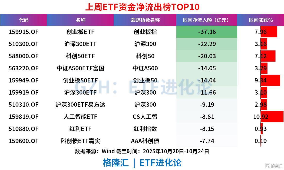 净流出方面,创业板指、沪深300、中证A500、科创50、AAA科创债、CS人工智、创业板50上周分别净流出55.28亿元、44.97亿元、39.81亿元、33.55亿元、21.84亿元、15.55亿元、12.63亿元。