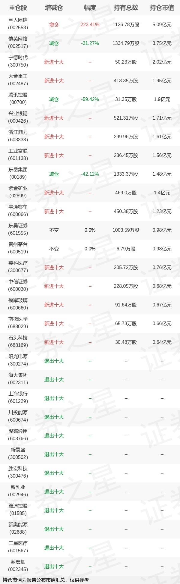 王斌旗下基金合并股票持仓全景请见下表(数据截止至2025-9-30日):