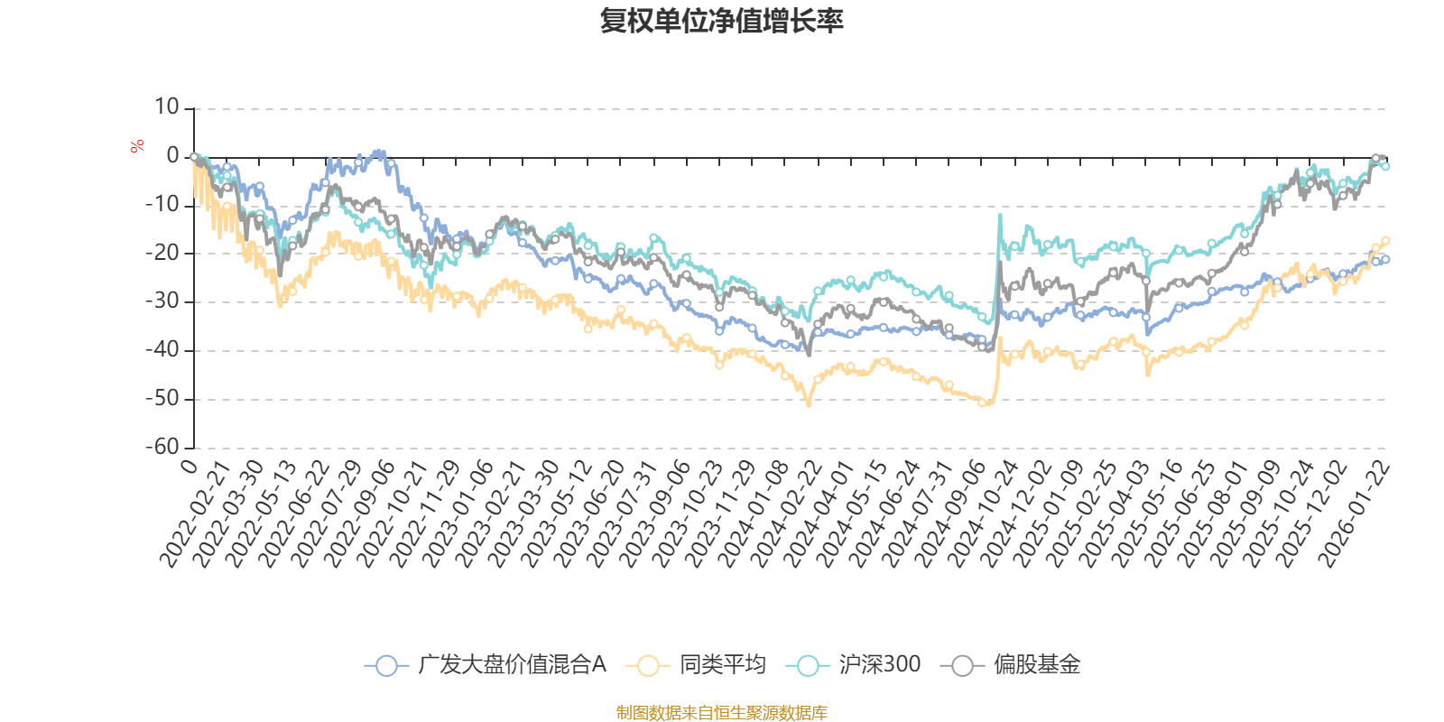 截至1月22日,广发大盘价值混合A近三个月复权单位净值增长率为6.27%,位于同类可比基金435/621;近半年复权单位净值增长率为7.62%,位于同类可比基金542/621;近一年复权单位净值增长率为17.92%,位于同类可比基金544/613;近三年复权单位净值增长率为-8.07%,位于同类可比基金465/535。
