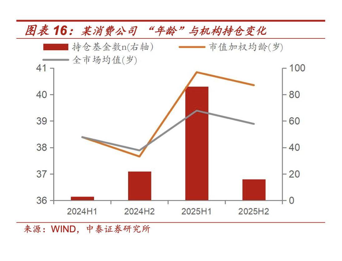 研报以典型新消费上市公司为例测算,截至2025年四季度,该标的机构持仓平均年龄高达40.35岁,不仅远超全市场平均水平,已然跻身隐形高龄资产行列。